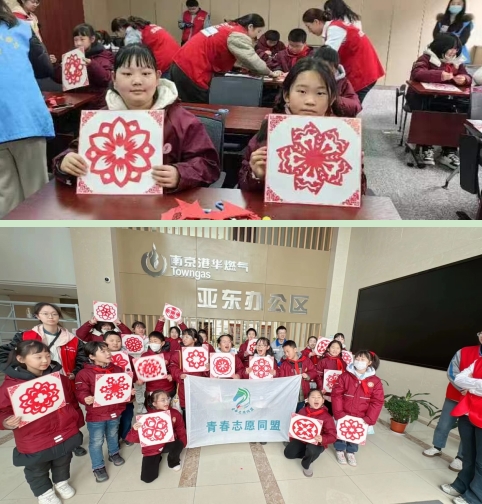 臨近春節(jié),港華燃?xì)鈦問|辦公區(qū)的志愿者還貼心為少先隊(duì)員們準(zhǔn)備了“剪窗花慶新年”的活動(dòng)環(huán)節(jié),一把剪刀、幾張紅紙,經(jīng)過老師的示范,很快一幅幅各具形態(tài)的窗花便在孩子們手中誕生。歡樂祥和的氛圍縈繞在活動(dòng)室,溫馨了窗外的冬天。