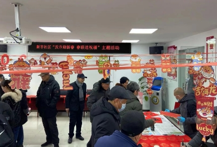 春聯(lián)反詐作用大,共護平安新春。2月4日,社區(qū)開展“反詐迎新春,祝福送萬家”主題活動,邀請通州區(qū)退休老干部書法家協(xié)會的書法家們?yōu)檩爡^(qū)居民寫春聯(lián)、福字,現(xiàn)場書法家們將反詐宣傳標語寫在對聯(lián)上送給居民。