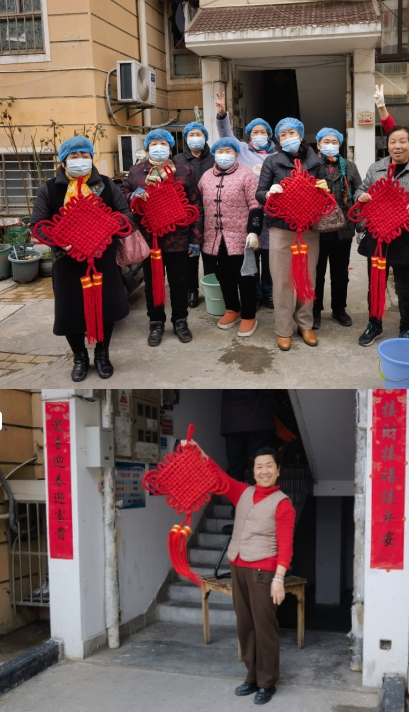 清掃完畢之后,志愿者們?cè)趩卧T口張貼了對(duì)聯(lián),掛上中國福,一起拍照留念,充滿了濃郁的節(jié)日氛圍。