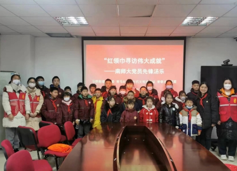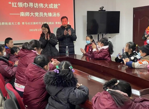 本次活動(dòng)是“尋訪偉大成就”系列第三場(chǎng),活動(dòng)邀請(qǐng)到的嘉賓是南京師范大學(xué)黨員先鋒、團(tuán)委副書(shū)記湯樂(lè)老師,湯老師與隊(duì)員們分享了自己的成長(zhǎng)故事,勉勵(lì)少先隊(duì)員員們樹(shù)立遠(yuǎn)大理想,向目標(biāo)努力奮斗,學(xué)時(shí)代先鋒、做先鋒。