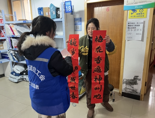 社區(qū)職工志愿者們深入到快遞驛站,為辛勤工作的員工們送上了寓意吉祥如意的春聯(lián)。這些精心挑選的對聯(lián),字里行間洋溢著溫馨與幸福,傳遞著濃濃的節(jié)日祝福,為即將到來的春節(jié)增添了無盡的喜慶氣氛,也為大家?guī)チ藵M滿的福氣與誠摯的祝愿。