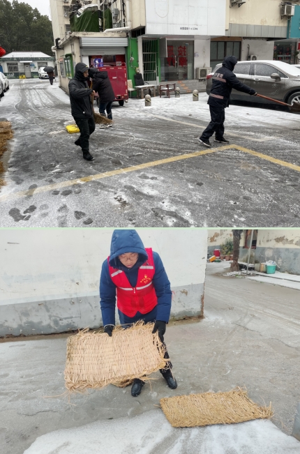 在22日下午到晚間,社區(qū)工作人員、新業(yè)態(tài)群體黨員和共建單位黨員對街面商戶進行了通知,做好商戶門前的掃雪,對社區(qū)住宅區(qū),如馬群公寓、陳家院村等,鋪設(shè)防滑草甸,撒融雪劑,保障下班的居民回家安全。