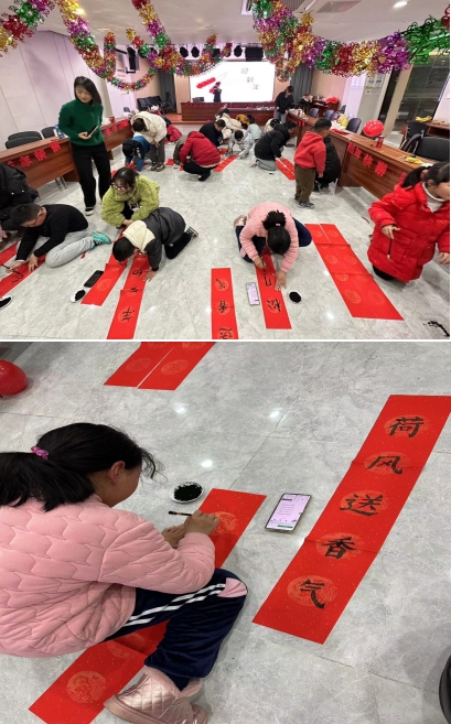 為了弘揚中華民族傳統(tǒng)文化,營造社區(qū)新年氛圍,豐富社區(qū)青少年的寒假生活,2024年2月8日南京市江寧區(qū)秣陵街道火炬村志愿者組織轄區(qū)內(nèi)未成年人開展寫春聯(lián)、送春聯(lián)活動?;顒又?,二位書法老師手把手教小朋友調(diào)墨汁、寫書法,壓紙、沾墨、起筆……不少零基礎的孩子通過現(xiàn)場學習也能很快上手,他們把純真的心意融入到一幅幅喜慶的對聯(lián)中,一筆一畫書寫美好祝愿。