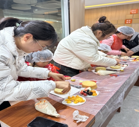 接著,烘培老師給大家介紹了蛋糕DIY所需的材料配方,耐心地演示了制作步驟和方法,大家細(xì)致觀察、認(rèn)真領(lǐng)會要點后,紛紛行動起來。這看似簡單的步驟,卻樂趣無窮,甜甜的味道,更是將節(jié)日的氛圍感拉滿!