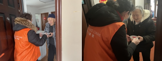 風(fēng)雪向寒心向暖。一大早,銀發(fā)顧問(wèn)志愿者準(zhǔn)備好糯米、芝麻等原材料,忙著打粉、拌芯,大家邊包邊談話家常,在愉快的氣氛中包出了品種多樣的多份湯圓,白白胖胖的元宵剛出鍋,志愿者們就上門(mén)為獨(dú)居老人送去,每個(gè)老人臉上都洋溢著歡樂(lè)喜慶的笑容。“謝謝你們還記得我,讓我感受的節(jié)日的溫暖!感謝黨和政府對(duì)我們老年人的關(guān)心!”老人感動(dòng)的說(shuō)道。