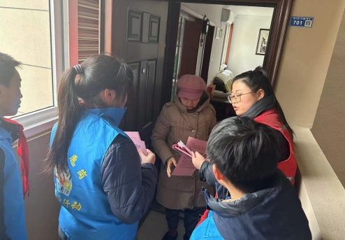 隨后,學生們又分成小組,上門入戶宣傳樓道安全知識。他們向居民們耐心講解了樓道內禁止堆放雜物的重要性,提醒居民們保持樓道暢通,確保居民的安全出行。同學們的熱情和認真態(tài)度得到了居民們的一致好評。
