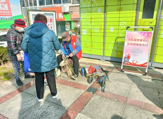 此外,活動(dòng)現(xiàn)場(chǎng)還設(shè)置了磨刀區(qū)、理發(fā)區(qū)以及問(wèn)題答疑區(qū)。磨刀師傅們耐心地為居民們打磨舊刀具、剪刀,讓它們煥然一新。理發(fā)師們則為居民們提供了簡(jiǎn)單發(fā)型的免費(fèi)義剪服務(wù),讓大家在新的一年里煥發(fā)新氣象。問(wèn)題答疑區(qū)的工作人員們則化身“智囊團(tuán)”,耐心解答老年居民們?cè)谥悄苁謾C(jī)維修、app下載卸載、養(yǎng)老保險(xiǎn)認(rèn)證等方面的基礎(chǔ)問(wèn)題,幫助他們更好地適應(yīng)現(xiàn)代生活。