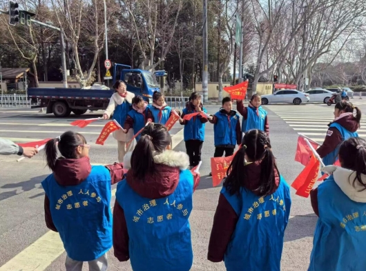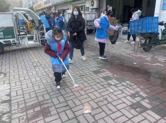 活動當(dāng)天,少先隊員一早便到達(dá)了集合地點,在社區(qū)工作人員和志愿者的引導(dǎo)下兵分兩路,一隊帶著毛巾、水桶、拖把等清潔用具走進(jìn)社區(qū)居民樓,化身“清潔小達(dá)人”,圍繞小區(qū)開展環(huán)境衛(wèi)生大掃除;另一隊少先隊員則出現(xiàn)在社區(qū)交通路口,和交警叔叔一起,參與交通秩序維護(hù),成為“文明交通代言人”。早春的清晨寒意猶在,可抵不住少先隊員們參與活動的熱情,無論被分配在哪個崗位,他們個個精神抖擻,積極勞動,充分發(fā)揚了不怕臟、不怕累、不怕辛苦的奉獻(xiàn)和志愿精神。