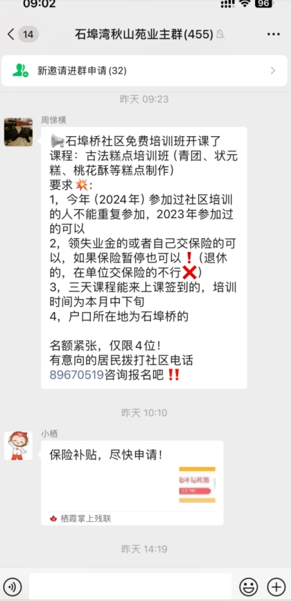 石埠橋村社區(qū):掌上云平臺(tái)發(fā)布培訓(xùn)班通知,居民踴躍報(bào)名參與