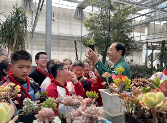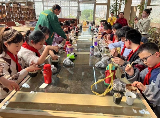 3月15日,南京市棲霞區(qū)馬群街道潤康苑社區(qū)綜合文化服務(wù)中心聯(lián)合南灣營小學(xué)的40余名學(xué)生組織開展校外實(shí)踐全民閱讀拓展活動(dòng),來到南京市最大的多肉植物種植基地——龍?zhí)读⑶ɑ苊缙詧鲞M(jìn)行勞動(dòng)研學(xué),知行合一深化落實(shí)全民閱讀活動(dòng)。