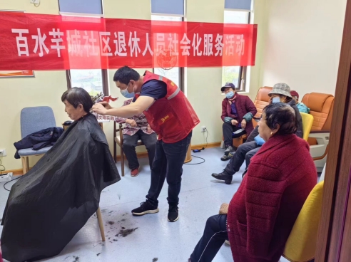 百水芊城社區(qū)開展“關(guān)愛退休職工,愛心義剪”活動