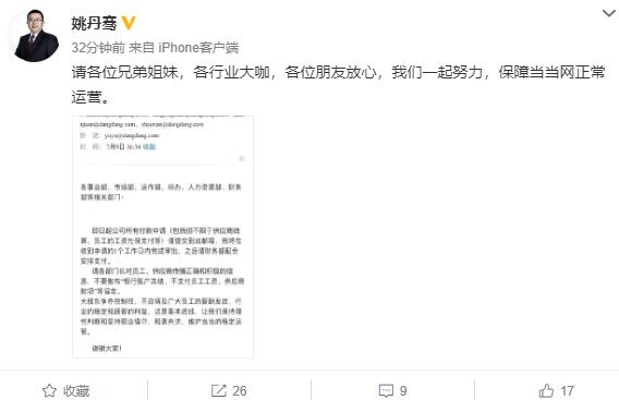 當(dāng)當(dāng)網(wǎng)代理CEO姚丹騫發(fā)聲:即日起公司付款申請(qǐng)由我審批