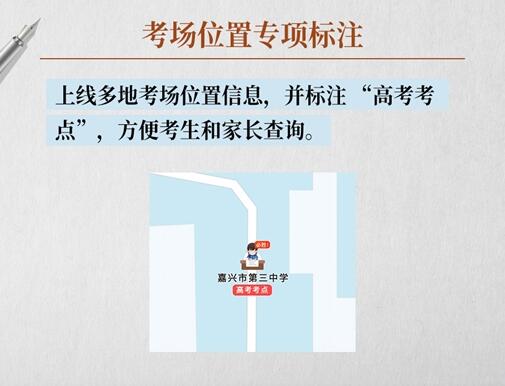 為了更好服務(wù)考生,高德地圖已在國(guó)內(nèi)主要城市上線高考考場(chǎng)位置信息,并統(tǒng)一標(biāo)注“高考考點(diǎn)”字樣,同時(shí)將建議非送考車輛盡量避開(kāi)考點(diǎn)周邊易擁堵路段。