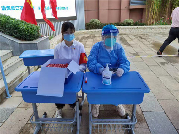 正值暑假,本該寧靜平和的瑯琊路小學(xué)柳州東路分校北校區(qū),近日因為被設(shè)為核酸檢測點,而分外忙碌。南京中支本部營服的王培伙伴就在這里默默的做著志愿工作。王培伙伴在加入壽險行業(yè)前,曾經(jīng)是一名醫(yī)護工作者,有著七年的臨床護理經(jīng)驗,這次疫情的突然爆發(fā),作為央企太平的員工,責(zé)任意識和擔(dān)當(dāng)精神再度被喚醒。“此時的南京需要我們,此時的民眾需要我們”,剛好孩子所在的學(xué)校在招募志愿者,雖然家里還有放暑假的孩子需要陪伴、志愿服務(wù)也讓她擔(dān)心是否會影響家人,但王培伙伴還是下定決心,報名參與了志愿者行動。在檢測現(xiàn)場,王培伙伴與一線工作人員交替值崗,負(fù)責(zé)了采樣登記、測溫查碼等工作,一個下午檢測點就完成了600多份采樣登記。
