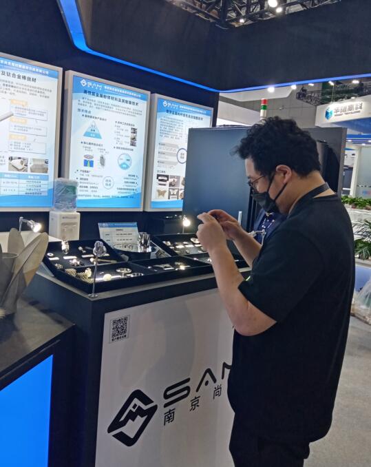 在增材制造領域,南京尚吉始終圍繞制粉用鈦及鈦合金棒絲材產(chǎn)品、VIGA、EIGA、PREP等高性能金屬粉體材料及其制備技術及復雜金屬構件綠色高效精整技術進行技術革新與產(chǎn)品創(chuàng)新。在TCT Asia 2021亞洲3D打印、增材制造展覽會上,南京尚吉攜母材合金棒絲材、金屬粉體材料、精整裝備首次亮相此次行業(yè)盛典,吸引了行業(yè)眾多知名專家、產(chǎn)業(yè)鏈用戶的關注,其中包括全球3D打印巨頭企業(yè)3D SYSTEMS Geomagic中國區(qū)銷售總監(jiān)戴剛英女士以及同濟大學設計創(chuàng)意學院創(chuàng)意工場數(shù)字化設計與制造負責人鄭康奕老師在展會現(xiàn)場對南京尚吉的關注。