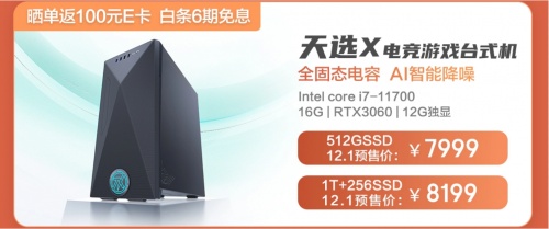 12月6日,華碩天選X高性能臺式電腦新品在京東商城正式開售。此次,天選X高性能臺式電腦在處理器上進行強化進階,全面配備第十一代英特爾酷睿處理器,并有多種配置可選。其中,搭載英特爾酷睿i7-11700處理器,16GB內(nèi)存,512GB SSD固態(tài)雙硬盤,以及RTX 3060獨立顯卡的組合,開售驚喜價7999元。