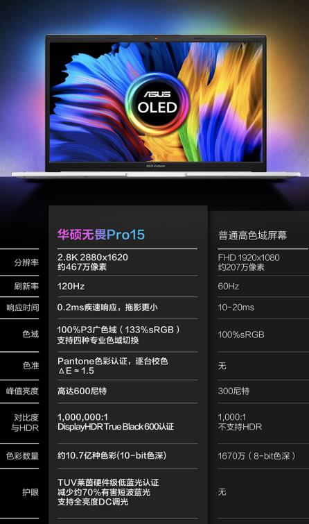 在保持高性能創(chuàng)作的同時(shí),無(wú)畏Pro15 2022的屏幕素質(zhì)也同樣令人稱贊。作為#華碩好屏3.0#的又一成員,它搭載2.8K 120Hz OLED HDR屏,采用E4發(fā)光材質(zhì),在色彩、亮度、對(duì)比度等參數(shù)上全方位超越傳統(tǒng)筆記本屏幕,大屏實(shí)力嘆為觀止。