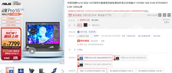 618必入!12代酷睿標(biāo)壓處理器+RTX 3050Ti獨(dú)顯 華碩靈耀Pro16 2022開(kāi)售 性能猛獸!華碩靈耀Pro16 2022高性能創(chuàng)作本618首發(fā)