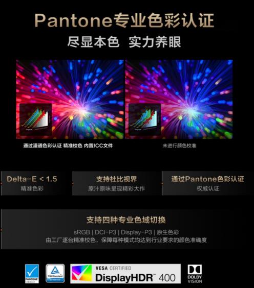 靈耀Pro16 2022的這塊擁有100% DCI-P3影院級(jí)廣色域的屏幕還內(nèi)置了定制ICC文件(平均Delta E<1.5),擁有Pantone色彩認(rèn)證、VESA DisplayHDR True Black 400認(rèn)證,讓屏幕中所呈現(xiàn)的內(nèi)容更貼近真實(shí),也為HDR視頻觀影和內(nèi)容創(chuàng)作奠定了良好基礎(chǔ)。